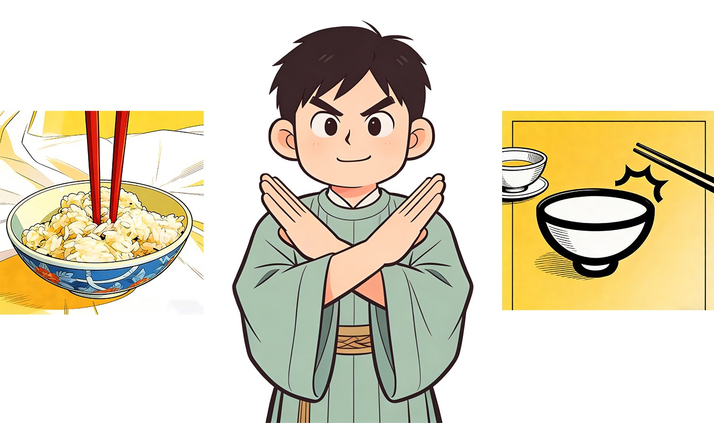 Pentru a indica că ați terminat de mâncat, vă puteți așeza bine bețișoarele peste partea de sus a castronului sau a farfuriei.