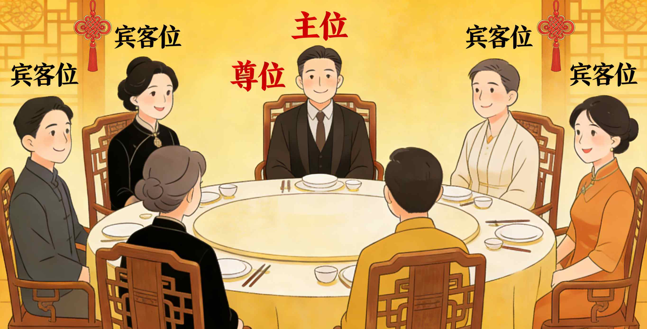 În locurile tradiționale chinezești, cea mai onorată poziție este de obicei orientată spre sud, situată în partea de nord a mesei.